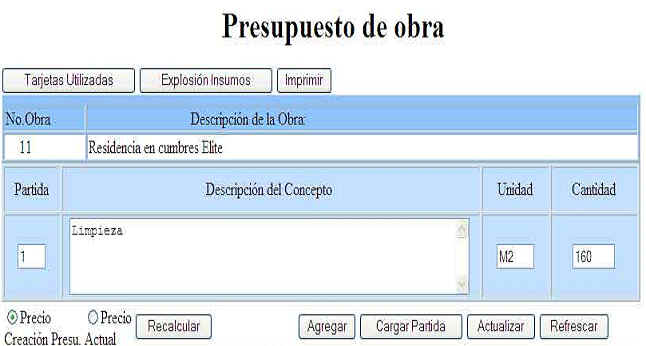 Se pone el número de la partida, el nombre, la unidad del concepto, y la cantidad.